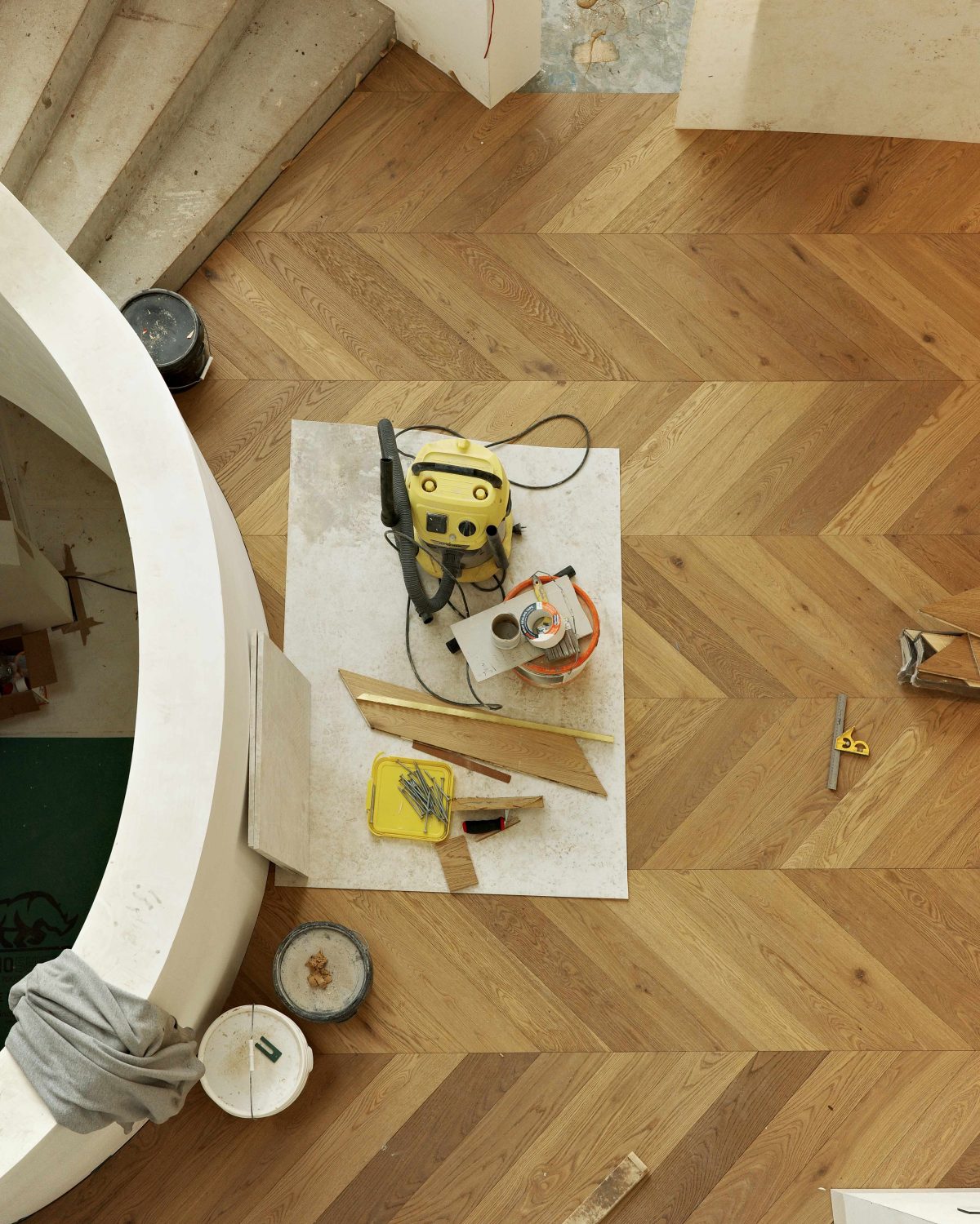 Some photos from another recent site visit to Cranston House. The concrete for the tennis court is being poured and the chevron flooring is being laid.